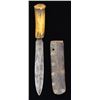 DAGGER. 10” overall, 6” sharp spear point, crown stag grip with tang crimped over at top, well balanced heavy dagger, sheath is folded over heavy leather with lead rivets like seen on many Confederate knives. CONDITION: very good “as found”. (02-16799/JS). $400-600.