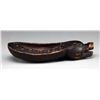 DISH. Late 19th century. A nice cedar example carved with open mouth and with a row of beads along the edge of the deep bowl. SIZE: 2 1/2" h x 12" l x 5" w. CONDITION: very good original condition with coffee brown patina, no repairs or damage, and normal and expected abrasions and in use wear. (05-1076/TG). $700-900.