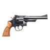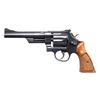 Cal. 357 Mag. S# N276396. Bbl. 6" pinned w/ half length underlug. Ramped serrated blade front sight. Adjustable rear sight. Mfg. 1974-77. Blue finish w/ case colored trigger & hammer. Checkered walnut magna grips w/ silver S&W medallions. CONDITION: grips show some dings & handling marks. Trigger & hammer retain nearly all their case colors w/ some freckling & operational wear. Balance of metal retains 93% original blue w/ a drag line on cyl., some edge wear & a few scattered spots of oxidation. Bright very good plus bore. (23-5181/MJC). MODERN. $800-1200.