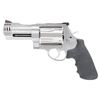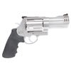 Cal. 500 S&W Mag. S# CJA9233. Bbl. 4" with compensator. Ramped serrated blade front sight with orange insert. Adjustable square notch rear sight with white outline. 5-shot cyl. Stainless finish with hard chrome trigger & hammer. Black rubber finger groove grips with S&W monograms. CONDITION: grips show light handling wear. Metal shows some light handling marks & operational wear. Action functions properly when hand cycled. Bright very good plus bore. PROVENANCE: Estate Collection of John "Jack" Dhooghe. (25-5534/MJC). MODERN. $800-1,200.