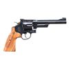 Cal. 45 Colt. S# DCR4197. Bbl. 6 1/2". Patridge front sight. Adjustable square notch rear sight. Blued finish with case-colored target hammer and trigger. Checkered hardwood grips with silver S&W medallions. UNATTACHED ACCESSORIES: matching-numbered factory hardcase that shows some staining with manual, cable lock, and paperwork. CONDITION: grips show minimal light handling marks. Trigger and hammer retain much of their case colors with some operational wear. Balance of metal retains 98% original blue with a moderate drag line on cyl. Action functions properly when hand-cycled. Bright, near excellent bore. (24-4435/MJC). MODERN. $500-700.