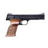 Cal. 22 LR. S# 73532. Bbl. 5 1/2". Ramp mounted patridge front sight w/ added white paint. Square notch adj. rear sight. 2 piece checkered walnut grips. MAGS: 1 detachable 10 rd. CONDITION: over 90% blue showing edge & muzzle wear w/ scattered light scratches & marks. Grips have worn finish. Right panel has small chip at butt. Very good bore. (24-6613/DS). MODERN. $600-900.