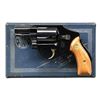 Cal. 38 Spcl. S# L6669. Bbl. 2" pinned. Ramped blade front sight. Fixed rear sight. DAO revolver w/ grip safety & flat latch. Blue finish. Case colored trigger. Smooth walnut grips w/ S&W medallions. UNATTACHED ACCESSORIES: factory box matching numbered to gun w/ manual, cleaning rod, bore brush & factory paperwork. CONDITION: grips show some light handling wear. Trigger retains nearly all original case colors w/ light operational wear. Balance of metal retains 95% original blue w/ a drag line on cyl. & some light handling wear. Bright very good plus bore. (23-4956/MJC). CURIO. $700-1000.