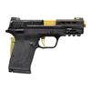 SEMI AUTO PISTOL. Cal. 9mm Luger. S# NLV9926. Bbl. 3 3/4" gold coated. Fiber optic sights. Matte black finish ported EZ slide. Ambi safety. Gold coated Performance Center trigger. Black polymer frame w/ accessory rail & gold coated grip safety. MAGS: 1-8 rd. UNATTACHED ACCESSORIES: w/ box. CONDITION: all aspects near excellent. PROVENANCE: The Collection of Gun Sport Ltd owned by Jon R. Thomas. (23-4540/MJC). MODERN. $300-500.
