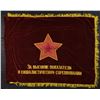 MILITARY FLAG. 64” x 55” Circa 1960. High quality doubled red velvet panels with silk embroidery, one side with Lenin’s portrait and opposite gold star. The text translates: “FOR OUR SOVIET HOMELAND / TRANSFER BANNER OF THE MILITARY COUNCIL OF THE / BORDER TROOPS OF THE USSR” and verso: “HIGHEST PERFORMANCE IN SOCIALIST COMPETITION”. CONDITION: fine, double velvet panels sewn together. (02-17547-71/JS). $200-400.
