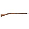 Cal. 11mm Mauser. S# 1882. Bbl. 32". Bolt is mismatched, all other visible parts are matching. Top of bbl. has Spandau arsenal markings. Back right of receiver has 1886 date. Ladder rear sight graduated to 1600m. Inverted V blade front sight. Unit marking on buttplate that reads "3.G.G.R./E.2.30" for a Guards Grenadier replacement unit. Bolt operation is a bit sticky. Walnut stock set w/ bottom mounted sling swivels. Right side of butt has German ordnance cartouches. Middle band is loose & is missing part of retaining pin. UNATTACHED ACCESSORIES: muzzle cover w/ "BLR 13.58" unit marking. CONDITION: stock set looks lightly sanded w/ added finish, a couple cracks behind magazine tube, a few filler repairs, scattered dings & handling marks. Metal retains 85% of a reblue w/ scattered oxidation & blued over pitting. Good bore w/ some pitting & oxidation but strong rifling. (01-21845/MJC). ANTIQUE. $300-500.