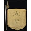 SCABBARD. The haversack measures approx. 16" x 13 1/2" & is made of heavy khaki canvas. The front flap is stenciled with crossed rifles showing a "1" above & "G" below. Also stenciled on the flap is "U.S." with "56" underneath. The scabbard has a metal body with leather frog & brass belt loop. The attachment disk has a US in the center. CONDITION: haversack shows light to moderate wear with some staining. Scabbard is complete with moderate wear to the leather frog. (02-17872/BF). $75-125.