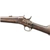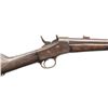 Cal. 43 Spanish. NSN. Bbl. 20 1/2". Blade front sight. Flip up rear sight. Upper tang has faint Remington markings with last patent date being 1874. This pattern carbine was known as the "Spanish Model" & was used by that country as well as Argentina. Saddle bar & ring present on left side of action. Hardwood stock set with added large hole in front of forend & only rear sling swivel present. CONDITION: heavily worn stock set shows some cracks, chips, dings, gouges, handling marks, scratches & overall wear. Metal is a dull gray patina with oxidation, pitting, edge wear & dings. Action functions properly when hand cycled. Bore shows pitting & oxidation along its length but visible rifling. (01-28657/MJC). ANTIQUE. $400-700.