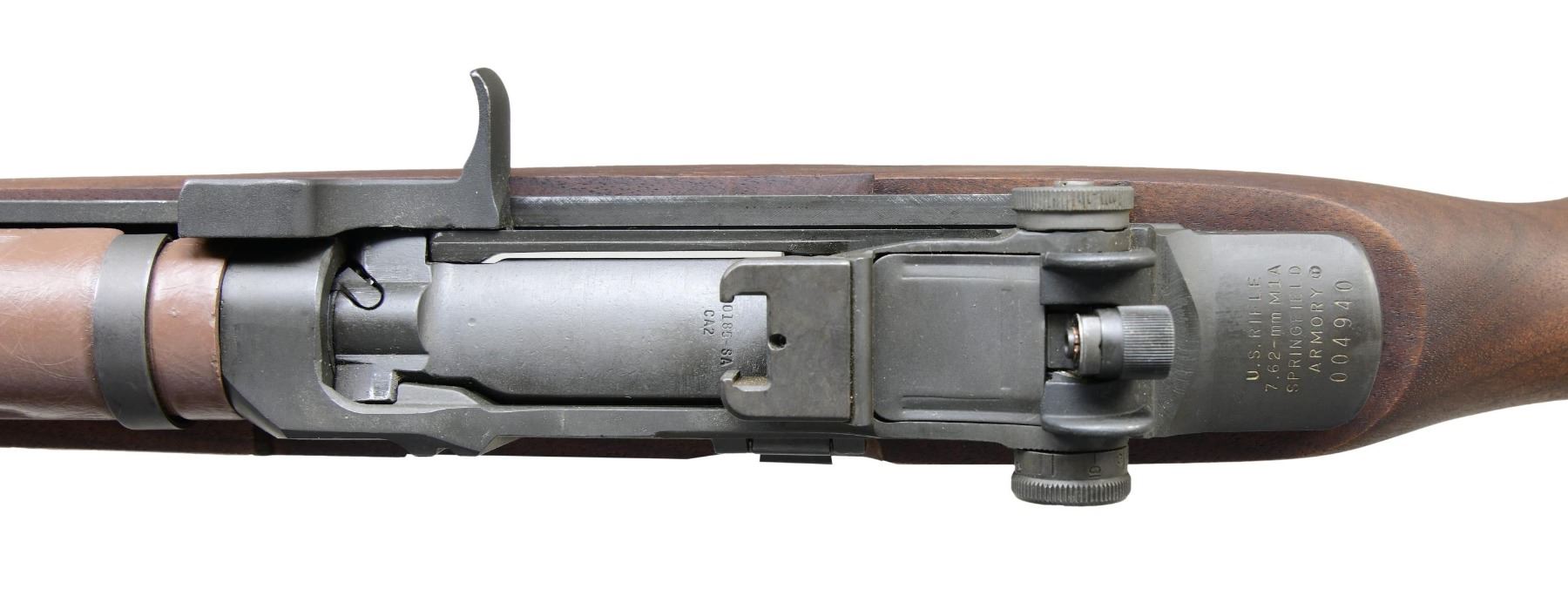 Cal. 308 Win. S# 004940. Bbl. 22", unmarked, with flash hider and bayonet lug. GI-style blade front sight with protective ears. Hooded national match adjustable aperture rear sight. Parkerized finish. Walnut stock with green plastic handguard and bottom-mounted sling swivels. Folding buttplate. MAGS: none present. CONDITION: stock set shows some scattered handling marks. Metal retains 90% original parkerized finish with some light oxidation spots on bbl., scattered edge wear, and fading. Action functions properly when hand-cycled. Bright, near excellent bore. (24-5423/MJC). MODERN. $800-1,200.