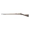 Cal. 45-70. S# 16675. Standard configuration w/ 32 1/2" bbl. secured by 2 spring retained bands fitted w/ long range ladder rear sight. Thin sided action marked "MODEL 1873" w/ eagle & "US" on breechblock. S# is at rear of action. Lock marked w/ eagle "US" "SPRINGFIELD 1873". Walnut stock is iron mounted. "US" is on buttplate. No inspectors marks are found. CONDITION: fair to good. Metal parts w/ old cleaning show silver highlights over scattered light pitting. Stock has repaired break through wrist & w/ some added wood at top behind tang. Bore appears to be good, needs cleaning w/ 1 or 2 scattered pits. Action & lock are good. (01-20327/MGM). ANTIQUE. $400-600.