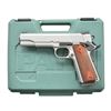 Cal 45ACP. . S# K021885. Bbl.5". Serrated slide w/ 3-dot sights w/ Hi-Vis fiber optic front blade. Match barrel. Extended, serrated thumb safety slide & mag release. Skeletonized, serrated hammer spur. Adjustable trigger. Checkered rear mainspring housing. Smooth front strap. Double diamond, checkered hardwood grips. MAGS: 2 factory 8rd. UNATTACHED ACCESSORIES: Green plastic factory base, lock & paperwork. CONDITION: All aspects indicate very little use. Finish is unblemished & grips only posses a few very light drag lines. Bright bore w/ strong rifling. Fire control mechanism appears to function correctly when cycled by hand. (22-5406/JZ). MODERN. $600-900