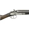 CROSSOVER STOCK. Cal. 12 Ga., 3". S# 1740. Bbls. dovetailed 30" are engraved “J&W Tolley 59 New Bond St. London” on slightly swamped game rib with crossbolt extension. Bbl. flats are stamped with Birmingham Nitro proofs for 2 1/2" chambers. Case hardened toplever action is fitted with front spring sidelocks with serpentine rebounding hammers. Action is fitted with Greener crossbolt third fastener and double triggers. Action and lockplates are line border engraved, maker’s name is on each lockplate. Serial number is on trigger guard tang. Straight grip buttstock of lightly figured European walnut is sharply offset to allow for shooting right handed while using one’s left eye. Stock measures approx. 14 5/8" over ribbed horn buttplate. Remnants of point pattern checkering are at grip. Matching splinter forend with shaped steel tip has Deeley release. MEASUREMENTS: BBLS: Bore Diameter: R .737", L .734". Restriction: R .002" (IC), L .030" (FULL). Min. Wall Thickness: R .020", L .025". STOCK: DAH: approx. 3". DAC: approx. 2 1/8". LOP: 14 5/8". CAST: wicked off. WEIGHT: 7 lb. 2 oz. CONDITION: good. Bbls. retaining most of an old reblue with a few subsequent dings and marks. Action retains traces of case hardening color but is mostly pewter gray. Lockplates are also silver gray. Stocks show considerable refinishing and a large number of marks and dings. Checkering almost gone. Bores are shiny with some light frosting evident. Action is somewhat loose. Locks are good. (22-4790). CURIO. $1,500-2,500.
