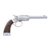 Cal. 22 LR. S# 20869. Bbl. 6". Bead front sight and sporting-style rear sight. Nickel finish. Smooth walnut grips. CONDITION: grips show scattered handling marks and some dings. Metal retains 90% nickel with scattered light flaking and oxidation. Action appears to function when hand-cycled. Good bore with some frosting and light oxidation. (24-6505/MJC). CURIO. $200-300.