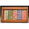 WITH 60+ BOXES OF RIMFIRE AMMO. A 16" x 10" x 6" wooden display case w/ glass front highlighted in red letters "Remington "HI-SPEED" 22's / FOR REAL POWER-BULLS-EYE ACCURACY" & "With 'Kleanbore' Priming to keep your gun barrel Bright and Clean". Displays 7 Boxes of Champion 22 LR, 23 Boxes of Remington 22 LR (4 different box styles), 2 Boxes of Remington 22 Long, 16 Boxes Peters High Velocity 22 LR, 12 Boxes Peters Standard Velocity 22 LR, 1 Box Peters Standard Velocity 22 Short & 4 Boxes of Peters High Velocity 22 Short. Each box of ammo appears to be full w/ some being shrink wrapped. Top of display has informational sticker for merchandisers to answer questions about Remington 22 ammo. CONDITION: display case in good overall condition w/ mostly legible markings & moderate handling marks throughout. Sticker on top is missing significant portions w/ half remaining. Boxes of ammo range from good to very good w/ wide ranging degree of wear. Ammo appears serviceable. (02-17643/MD). $300-600.