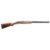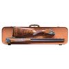 SUPERPOSED O/U SHOTGUN. Cal. 410 3". S# 3006J69. Bbls are 28" vent rib. Aftermarket Briley interchangeable chokes, set of 6 tubes included. Original choke markings were IMP/CYL and MOD chokes. White front and mid bead. Blued boxlock action w/ exquisite Midas grade engraving by former Browning master engraver Angelo Bee. Game scenes on receiver sides feature three flying doves on right and three flying quail on left. Scenes are bordered by gold wire inlay. Floorplate has a gold inlaid flying woodcock. Trigger guard bow has two gold quail. Balance of action is completely covered w/ relief carved oak leaf engraving. Upper areas have stippled surfaces. Matching engraving continues to forearm iron and breech end of bbls. Both sides of receiver have engraver's signature "A. Bee". Gold plated "SST". Selective ejectors. Non-automatic safety. Custom trim lightning style forearm and round knob long tang stock of exhibition quality European walnut having red and brown tones w/ burl figure highlighted by dark streaking. LOP: 14 5/8" over a thin leather covered pad. DAC: 1 1/2". DAH: 2 5/8". Neutral cast. WEIGHT: 6lb 11 oz. Manufacture date 1969. UNATTACHED ACCESSORIES: Browning luggage case. Case contains spare choke tubes, two choke tube wrenches, case keys and Browning Custom Shop gun sleeves. CONDITION: near excellent as upgraded in the Browning Custom Shop. Wood and metal retain virtually all finish. Stock shows a few small handling marks. Bright near excellent bores. PROVENANCE: From the Estate of Jon Thomas, Gunsport, LTD. (25-1080/DS). MODERN. $9,000-12,000.