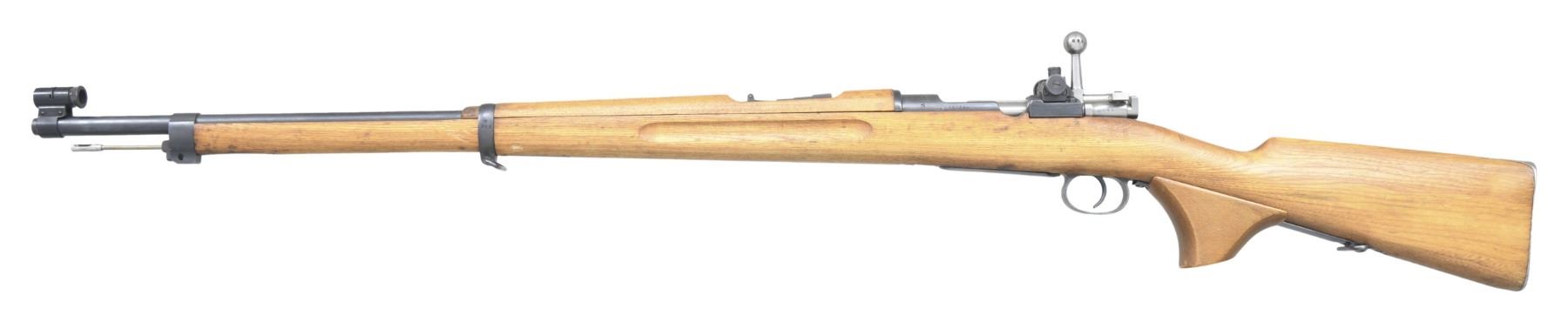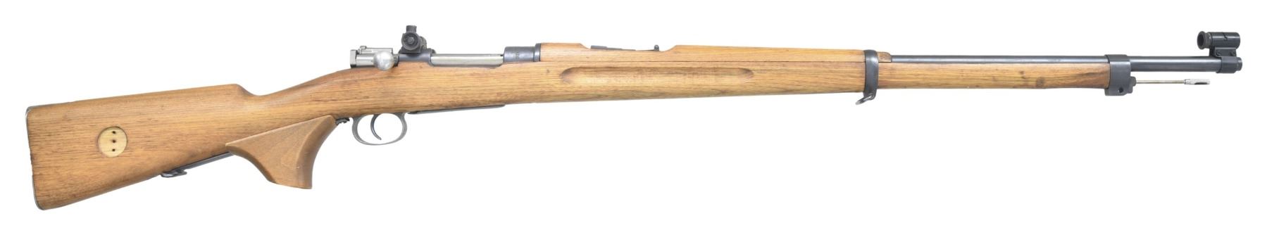 Cal. 6.5x55. S# 392094. Bbl. 29" with import marking. Diopter front sight. GF diopter rear sight made by Carl Gustafs. Matching numbers on receiver, buttplate & bolt parts. Bolt parts appear renumbered to match & other visible parts are mismatched. FSR or Swedish Volunteer Shooters Organization modified M96 rifle. Receiver ring has Carl Gustafs markings with 1916 date. Arsenal rework blued finish. Hardwood stock set with added grip & bottom mounted sling swivels. No stock disc present. Cleaning rod present. CONDITION: sanded stock set shows a repaired chip beneath new added grip, some band removal wear, dings & handling marks. Metal retains 92% arsenal rework blue with scattered light oxidation on the exposed edges. Trigger is sluggish but functional when hand cycled. Action otherwise works without issue when hand cycled. Bright near excellent bore. (25-3776/MJC). CURIO. $400-600.