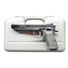 Cal. 45 ACP. S# EA27806. Bbl. 6". Single action only CZ-75 style pistol. Imported by EAA. Adj. rear sight. Blade front sight. Stippled grips. Manual safety. Blue finish. Rubber grips. MAGS: 4-10 rd. UNATTACHED ACCESSORIES: unnumbered factory gray hard case w/ paperwork, spare front sight & small allen wrench. CONDITION: grips show light handling wear. Metal retains 95% original blue w/ some handling & operational wear. Very good plus bore. (22-3345/MJC). MODERN. $500-700.