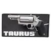 Cal. 410 3"/45 Colt. S# DR209905. Bbl. 3". Fiber optic front sight. Fixed rear sight. 5-shot cyl. Stainless finish. Grooved black rubber grips with Taurus medallions. UNATTACHED ACCESSORIES: matching numbered factory box with manual & keys for internal locking system. CONDITION: grips & metal show some light handling marks & operational wear. Action functions properly when hand cycled. Near excellent bore. (25-6218/MJC). MODERN. $300-500.