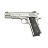 Cal. 38 Super. S# LBX06360. Bbl. 5" w/ polished throat & corresponding feed ramp. Mfg. 2005 to date w/ matte stainless edges & machined sides. Slide has front & rear slanted cocking grooves, Novak dovetailed 3 dot blued sights plus lowered & flared ejection port. Finely checkered front strap & flat mainspring housing. Ambidextrous extended safety plus beavertail grip safety w/ memory pad. Lightly extended mag. release, ring hammer w/ internal lock, skeletonized medium length trigger w/ over travel stop, lightly flared mag. well, full length guide rod & dbl. diamond checkered black plastic factory grips. Matching numbered frame, slide & bbl. MAGS: 1 blued factory 9 rd. w/ extended black base. CONDITION: all aspects near excellent including bore. (22-330/NW). MODERN. $400-550.