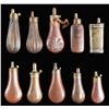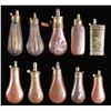 TEN DIFFERENT PISTOL FLASKS.