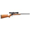 SHOT RIFLE. Cal. 17 Squirrel. S# G1022. Bbl. 23" Rochester marked heavy sporter with recessed target crown plus Weaver scope base holding Weaver gloss finished 6X38MM scope having duplex reticle; 1" vertically split alloy rings. Originally was some other 17 caliber such as 17 HMR that was rechambered plus a recessed oval machined to eliminate the original caliber and then marked with "17 Squirrel" in the oval. Mfg. 2002-2021 with matte blued frame having polished sides on tops of its frame reinforcements. Satin finished walnut stock set having 2 screw attached forend with sling stud; buttstock has black ventilated recoil pad, sling stud plus black grip cap having intertwined "T" and "C" logo. Wildcat caliber made from necking down 22 Hornet brass and shortening it to .996" for 17 caliber bullets. Very economical to use as a pound of powder will power 800 rounds. Nice unit to have if you collect Ruger 10/22's due to its G1022 serial number. Another G2 with serial number SG1022 in this auction as well. UNATTACHED ACCESSORIES: barrel box without label having unrelated inked info. CONDITION: some extremely faint stock handling marks; all other aspects near excellent including bore and scope set. PROVENANCE: Estate of Groves Herrick. (25-5749/NW). MODERN. $500-750.