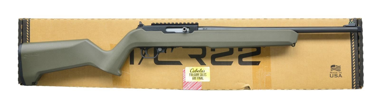 Cal. 22 LR. S# JLP3753. Bbl. 17" w/ threaded muzzle cap. Ghost ring sights. Receiver top is integral picatinny rail. OD green Magpul pistol grip stock. MAGS: 1 detachable 10 rd. (Ruger 10/22 compatible). UNATTACHED ACCESSORIES: original box containing trigger lock, cable lock & paperwork. CONDITION: near excellent overall w/ bright bore. (21-4282/MD). MODERN. $200-300.