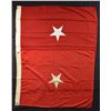 DESIGNATING FLAGS & MAJOR GENERAL OF AIR FORCE DESIGNATING FLAG. 1) 3x4’ Air Force Major General two 10" white stars on blue field, gold fringe. The Air Force, Army, Navy, Marines and Space Force all have specific rank flags. The number stars on these flags represent the rank of a flag officer of each branch. U.S Air Force rank flags are blue, bordered with fringe and containing their stars in a left to right configuration. U.S. Navy rank flags for flag rank officers at sea are also blue but their stars are configured differently. The rank flag for an Air Force Major General (two stars), came into existence in 1949 and is still used today. CONDITION: excellent. (02-17547-7/JS). 2) 3x4’ Brigadier General Army flags made by 3 different contractors, Valley Forge, Annin, and one unmarked, double applique fabric stars on red wool field. CONDITION: very good overall. (02-17547-80/JS). $200-400.