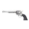 REVOLVER WITH FACTORY LETTER. Cal. 44-40. S# 166001. Bbl. 7 1/2". First year production of Colt's new "smokeless frame" style as evidenced by the spring loaded cyl base pin latch rather than the original transverse retaining screw. Subject revolver falls within a small transitional range wherein features of the "black powder frame" are still present. This revolver still retains the small, original black powder front sight and narrow land rifling appropriate for accuracy with black powder loads, is not guaranteed for smokeless powder and has no verified "VP" mark on the trigger guard. Revolver features a nickel finish with blued screws and cyl. pin latch. Matching numbers on frame, butt & trigger guard, Left side of bbl. roll stamped "COLT FRONTIER SIX SHOOTER". Bottom of bbl. marked with small "44". 2 Piece checkered hard rubber Rampant Colt grips. UNATTACHED ACCESSORIES: Caliber 44/40 / Barrel length 7 1/2" / Finish Nickel / Type of stocks Rubber / Sold and shipped to Hartley & Graham / Address New York, N.Y. / Date of shipment June 2, 1896 / Number of same type guns in shipment 5". CONDITION: metal surfaces retain approx 50% original nickel, notable flaking toward front of frame, front of cyl., muzzle & grip straps. Screw heads remain crisp. Slight marring of cyl. pin head. Good plus grips are lightly worn & beginning to brown with age. Bore has a frosted appearance with strong rifling & scattered areas of light oxidation. Mechanically fine; all 4 clicks present. (01-26982/BH). ANTIQUE. $3,500-5,000