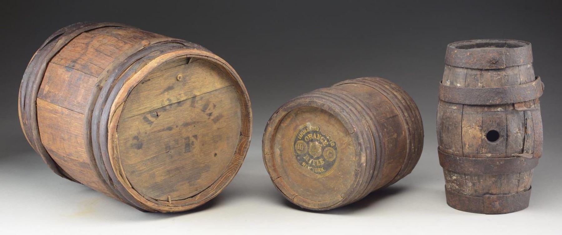 TWO GUNPOWDER KEGS & LIQUOR KEG.