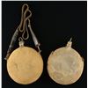 SLING. Civil War tin canteens converted for Spanish American War use w/ canvas covers, one stenciled "US" & the other "IS / 3C" & "US". CONDITION: fair overall. Covers soiled & stained but intact, one canteen dented w/ rust. Both canteens retain stopper plugs. (02-16225-2/JS). $100-200.