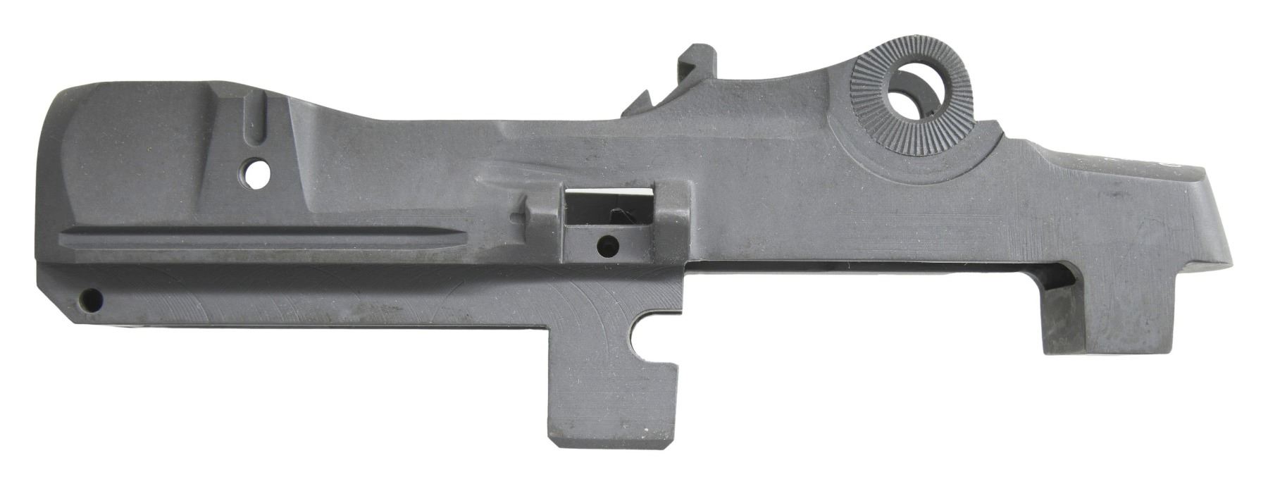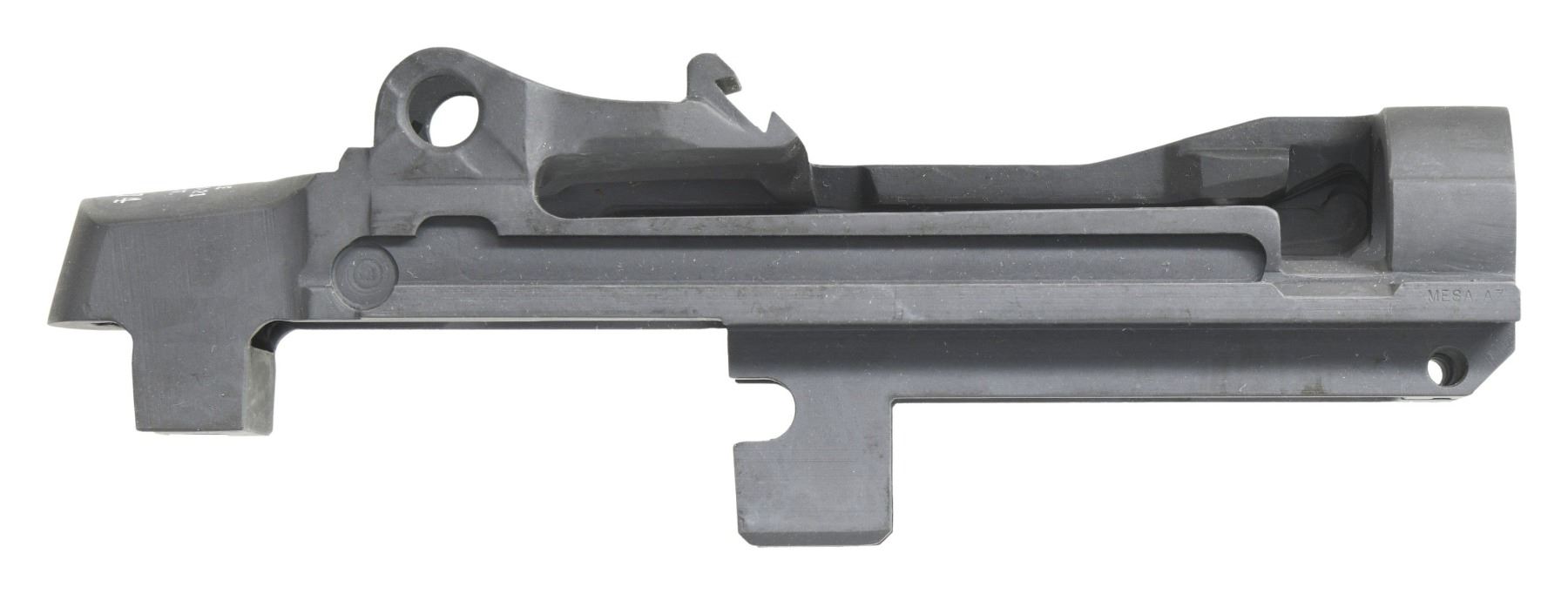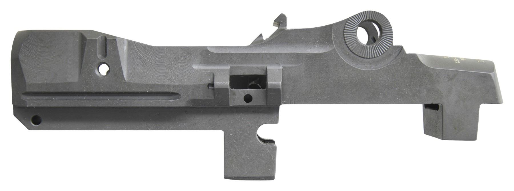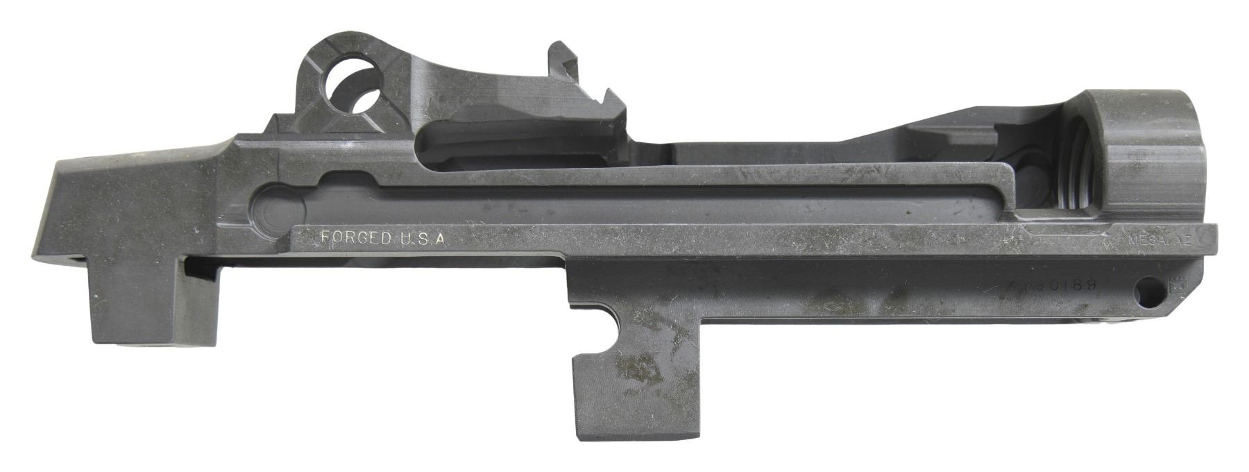 AUTO RIFLE RECEIVERS. No.1: M21 Receiver. S# 002174. Receiver is marked at heel "U.S. RIFLE / 7.62-MM M-21 / SMITH ENT. / serial number". Letters are non-sarif. Markings enhanced w/ white. Marked at right forward end "MESA AZ". Receiver has integral rear lug & contains no additional parts. (25-3169/RW). No.2: M14 NM Receiver. S# 001972. Receiver marked at rear "U.S. RIFLE / 7.62-MM M-14 NM / SMITH ENT / serial number". Sarif lettering is enhanced in white. Receiver is marked on outer edge of right rail "FORGED IN USA / MESA AZ". Number "791089" appears below rail. Receiver has integral rear lug. OVERALL CONDITION: both receivers retain nearly all of their original Parkerized finishes w/ only very light high point wear & show no signs of having been fitted to rifles. (25-3170/RW). BOTH MODERN. $400-600.