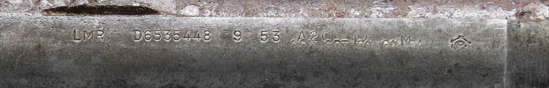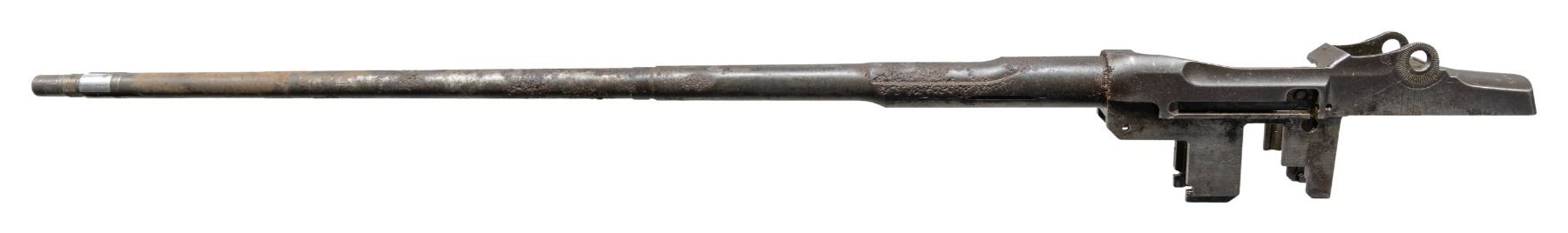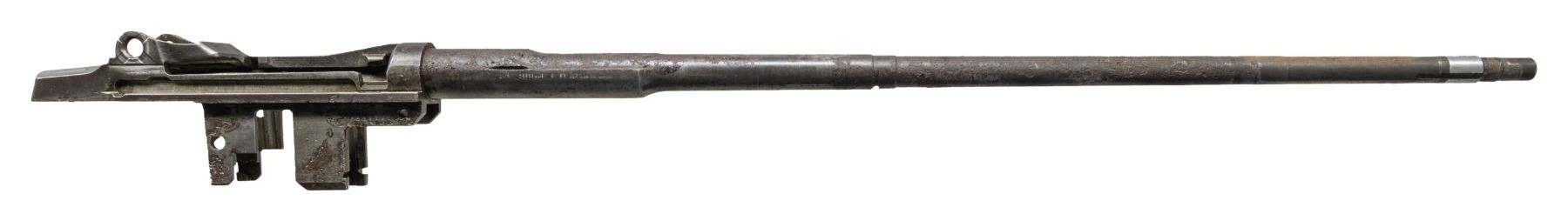 AND BARREL. Cal. 30-06. S# 5705302. Bbl. 24". Throat & muzzle gauges 3.0. Barrel markings on right side include "LMR 9 53" & import marks. Receiver & barrel carry no additional parts. CONDITION: receiver & barrel has extensive wear, showing oxidation & pitting throughout. Fair bore w/ worn lands & frosted grooves. (25-3148/RW). MODERN. $100-200.