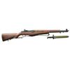 MILITARY RIFLE W/ BAYONET. Cal. 30-06. S# 5791658. Bbl. 24" marked on right side “HRA-2-52”. Throat & muzzle gauge 1.0. All visible parts markings are “HRA”; most markings are enhanced w/ white. Adjustable aperture rear sight. Blade front sight w/ wide protective ears. High hump gas cyl. lock & cross slot gas cyl. lock screw. Stamped trigger guard. Replacement walnut stock set. Green web sling. UNATTACHED ACCESSORIES: 9-3/4" fullered blade M1 bayonet marked on left Ricasso “AFH” “flaming bomb & “U.S.” Brown grooved composition grips. Green plastic scabbard marked w/ “U.S.” in “flaming bomb”. Bayonet has thinning wear turning gray. Grips have moderate wear & scattered handling marks. Scabbard has wear & handling marks but appears serviceable. CONDITION: stock set has light wear & scattered handling marks w/ deeply stamped markings. Has notable sm. chip on left side by trigger guard. Metal has 90% arsenal rework Parkerized finish w/ light high point wear. Very good shiny bore. (22-4209/RW). CURIO. $800-1200.