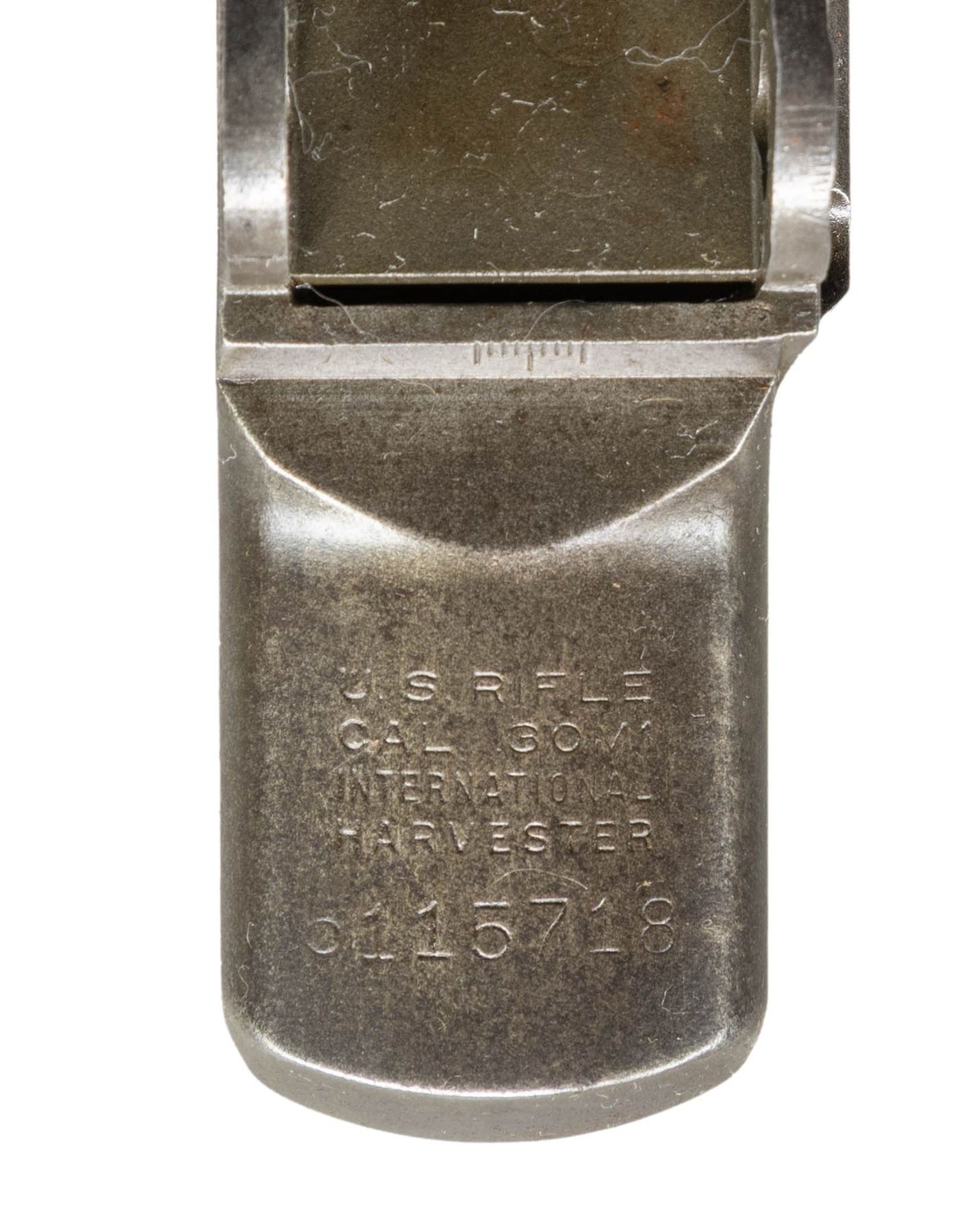 GARAND RECEIVER. S# 5115718. Receiver marked at heel "U.S. RIFLE / CAL. .30M1 / INTERNATIONAL / HARVESTER / serial number". Marked on right forward end "D6528291-L". No parts are present. CONDITION: receiver has turned overall gray w/ moderate wear & very small areas of oxidation. (25-2886/RW). MODERN. $300-500.