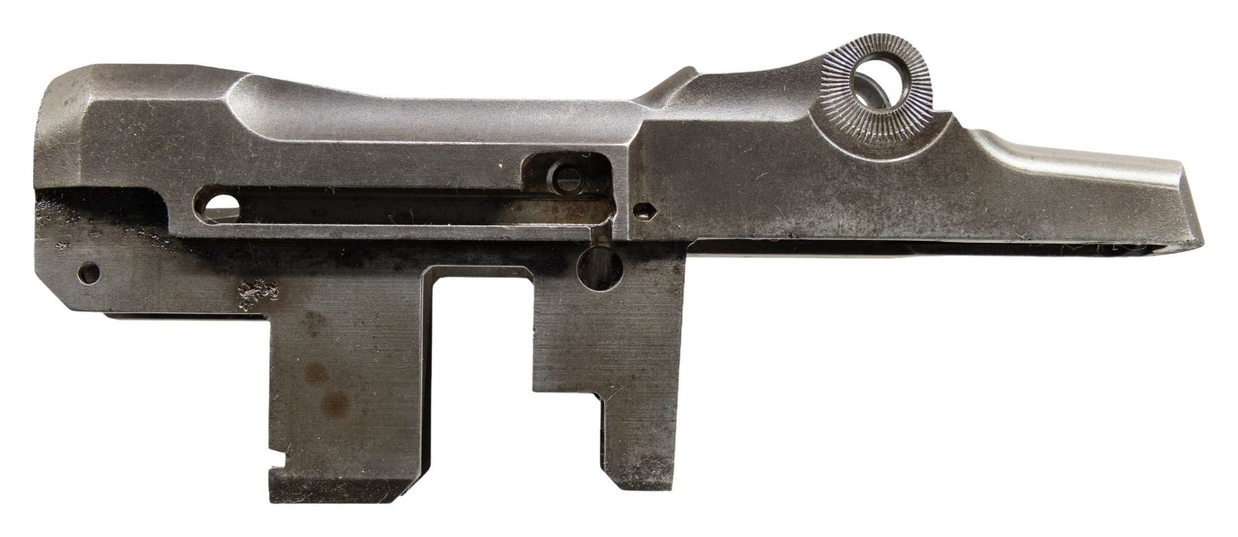 GARAND RECEIVER. S# 5139347. Receiver marked at heel "U.S. RIFLE / CAL. .30M1 / INTERNATIONAL / HARVESTER / serial number". Marked on right forward end "D6528291-X". No parts are present. CONDITION: receiver turning gray & patina is worn w/ scattered spots of light oxidation & spots of light pitting notably under wood line & on front of receiver ring. (25-2887/RW). MODERN. $300-500.
