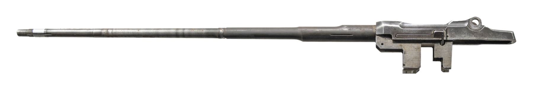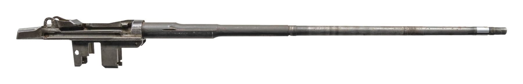 M1 GARAND BARRELED RECEIVER. Cal. 30-06. S# 4700420. Bbl. 24". Markings on the right side include "SA2-67" & over-stamped w/ import mark. Throat gauges: 2.0. Muzzle gauges: 1.0. No parts included except clip latch. CONDITION: barrel & receiver have considerable wear, turning gray & patina w/ areas of scattered fine pitting. Bore has strong lands, turning dark in grooves. (25-3140/RW). MODERN. $200-300.