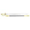 SWORD. Overall length: 37 3/4". Blade length: 30 3/4". This is an obviously English made sword but follows the form & style exactly of a US M1832 Medical Staff. Blade is elliptical in cross section & etched over 2/3 of its length with various military & foliate motifs including a crowned "GR". Blade is etched near the hilt, "WHITE MARLBROUGH ST. LONDON". Gilded brass hilt with orb decoration throughout the guard, knuckle bow, pommel & edges of the grips. Gilded brass mounted leather scabbard. CONDITION: blade shows original factory polish with a few widely scattered, discolored spots. Hilt retains nearly all of its original gilding. Scabbard mounts retain 90% of original gilded finish. Leather remains strong. (02-19517/BF). $700-1,000.