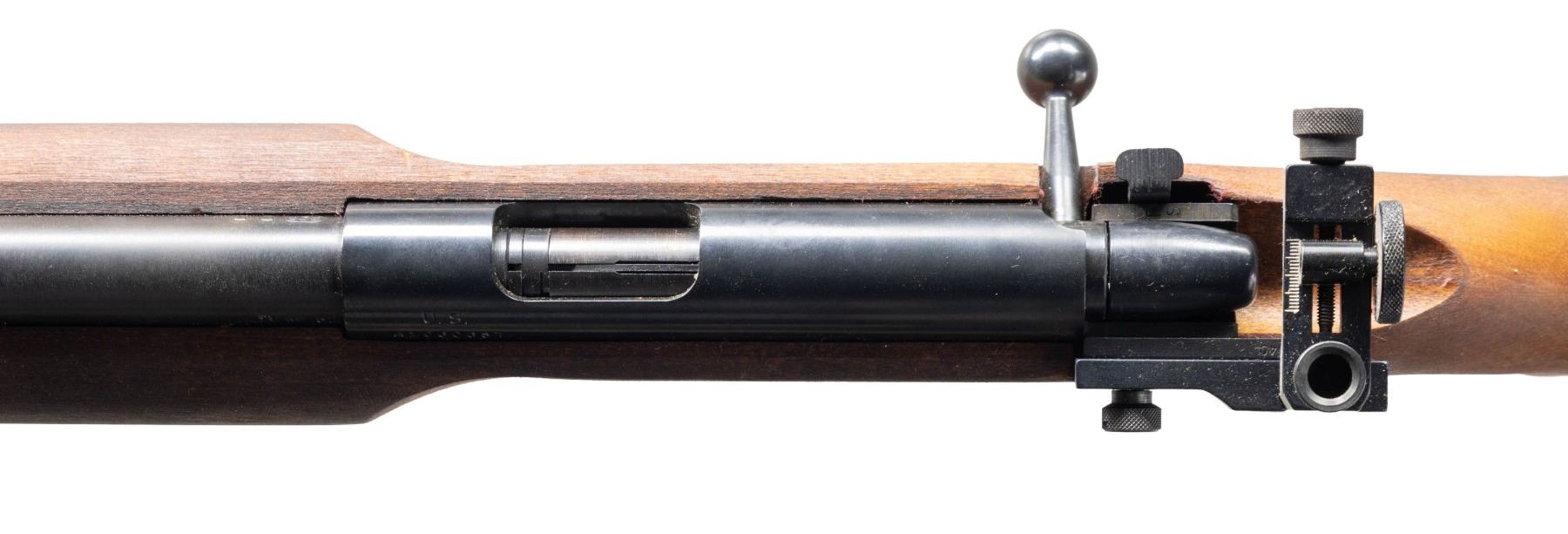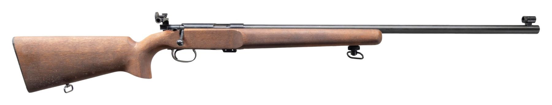 TARGET RIFLE. Cal. 22 LR. S# A1060687. Approx. 9,077 mfg. 1984-1986. Bbl. 27". Globe post front sight & Williams receiver sight. Hardwood target stock. MAGS: 1 - 5 rd. CONDITION: all aspects appear very good to near excellent showing light handling marks & 1 large streak of finish loss near muzzle. (25-3906/MD). MODERN. $300-500.