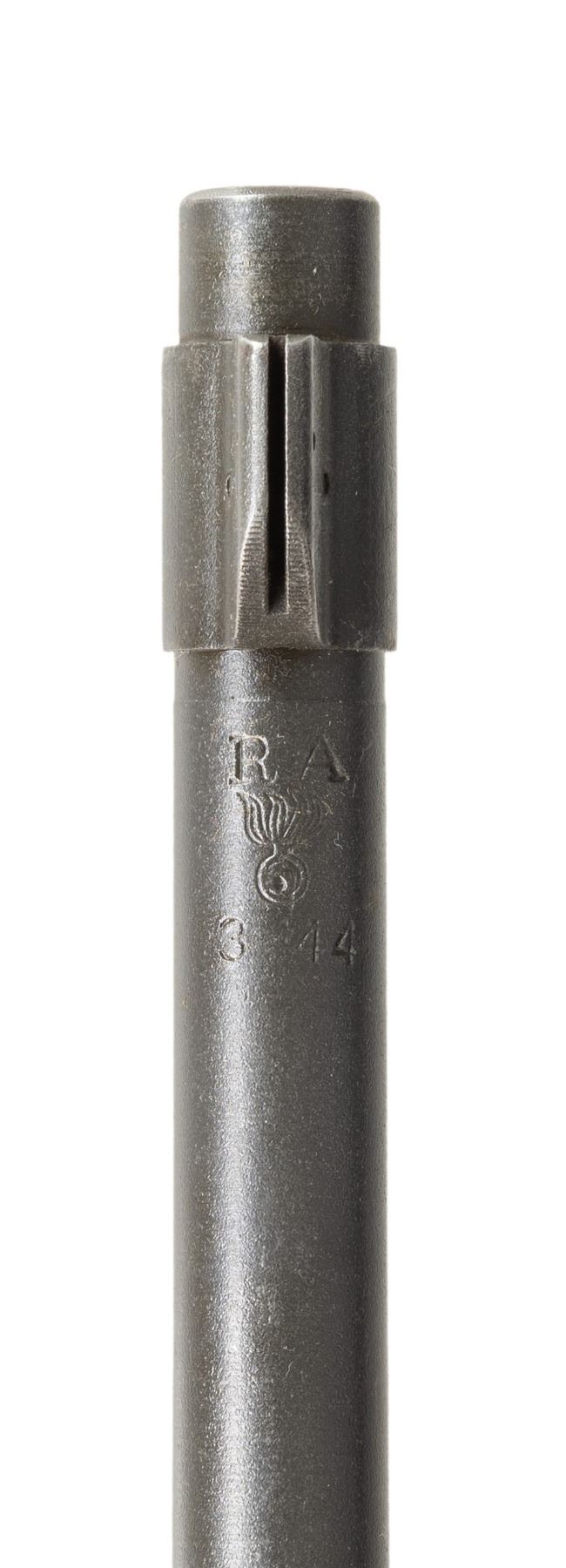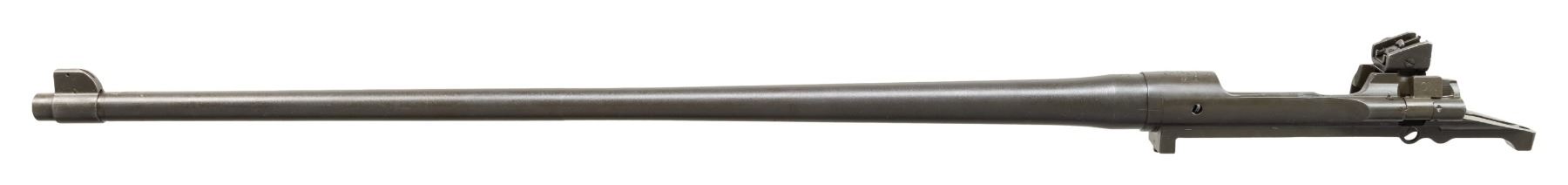 Cal. 30-06. S# 3606771. Bbl. 24". Barrel marked behind front sight "RA / flaming bomb / 3-44". Barrel is marked "C" over chamber. Barreled receiver is equipped only with the following parts: aperture rear sight assembly, cutoff assembly and front sight base without blade. CONDITION: clear crisp markings include assembly marks. Arsenal rework parkerized finish has very light hi-point wear. Bright shiny two-groove bore. (25-3064/RW). MODERN. $100-200.