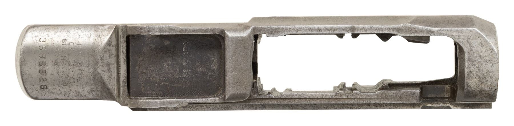 S# 3696526. Receiver has faint import mark on right front leg. Receiver markings at heel have been rendered faint except serial number. CONDITION: receiver shows extensive wear with oxidation and moderate pitting notably below wood-line. Receiver has been partially polished. (25-3060/RW). MODERN. $200-300.