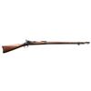 MILITARY RIFLE. Cal. 45-70. S# 358844. Bbl. 32 1/2". Buffington rear sight marked "R" graduated to 1400 yds. Blade front sight. Receiver ring has approx. 7/16" tall marking resembling Roman numeral 1. Breech block is dated 1884. Aluminum bronze firing pin. Flat lockplate marked w/ "US SPRINGFIELD 1873" & "eagle". 3 Click tumbler. Long comb walnut stock. Markings have been rendered obscure due to arsenal rework type finish. Two bands retained by springs. Upper band has sling & stacking swivels. Incorrect replacement ramrod. "US" marked buttplate. Two piece trigger guard w/ sling swivel. CONDITION: stock has wear & handling marks throughout w/ slight loss of wood in inletted areas. Metal has turned overall gray & patina w/ areas of polishing & rebluing. Buttplate, nose cap & band springs are polished bright. Bore turning dark w/ worn lands & scattered pitting throughout. (01-24514/RW). ANTIQUE. $300-500.