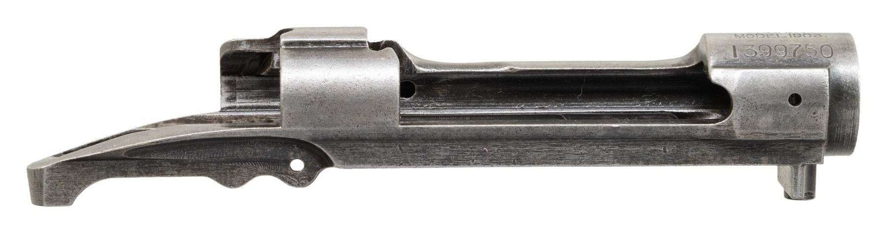 S# 1399750. Receiver manufactured in 1931. Receiver has the tiny punch mark midway of the top of the right receiver rail, which indicates a possible National Match receiver. The bolt raceways do not appear polished, which was also common to National Match rifles. Receiver contains no additional parts. CONDITION: receiver has turned an overall worn gray with spots of peppery oxidation. (25-3159/RW). MODERN. $100-200.