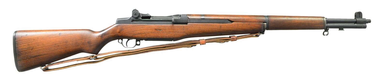 RIFLE. Cal. 30-06. S# 324043. Bbl. 24". Throat gages 5.0; muzzle gages 3.5. Bbl. is marked "SA 8-41". Adj. aperture rear sight blade front sight w/ protective ears. Operating rod bolt, trigger housing & hammer marked "SA." Safety marked "HRA". Single slot gas cyl. lock screw. Walnut stock set. Stock is marked only w/ faint circle "P" proof. Brown leather military style sling. UNATTACHED ACCESSORIES: cleaning rod w/ plastic handle, oiler & grease cup. CONDITION: stock set has arsenal rework type finish w/ slight loss of wood in inletted areas & light wear plus scattered handling marks. Metal retains lg. percentage of dark gray finish over green coating. Gray finish has notable areas of flaking on receiver exposing the underneath coating, which does not appear to be parkerizing. Shiny bore w/ strong lands. (22-684/RW). CURIO. $700-900.
