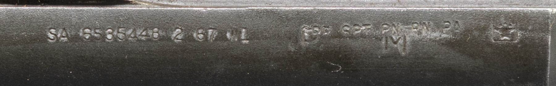 Cal. 30-06. S# 1350256. Bbl. 24". Throat gauges 8.0. Muzzle gauges 2.0. Barrel markings on right side include "SA 2 67" & import marks. CONDITION: receiver & barrel have worn arsenal rework refinishes w/ notable areas of oxidation & moderate pitting notable on barrel around chamber area. Bore is shiny w/ lightly worn lands. (25-3142/RW). MODERN. $200-300.