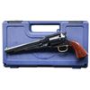 Cal. 44. S# A45754. Bbl. 8". Blade front sight. Case-colored hammer. Brass trigger guard. The balance of metal is blued. Smooth walnut grips. UNATTACHED ACCESSORIES: mismatched Colt Government model hardcase and Taylor's & Co. 45 Colt conversion cyl. CONDITION: grips show a few dings, some light scratches, and handling marks. Metal shows a few light spots of oxidation and some handling and operational wear. Very good bore. (24-595/MJC). MODERN. $300-500.
