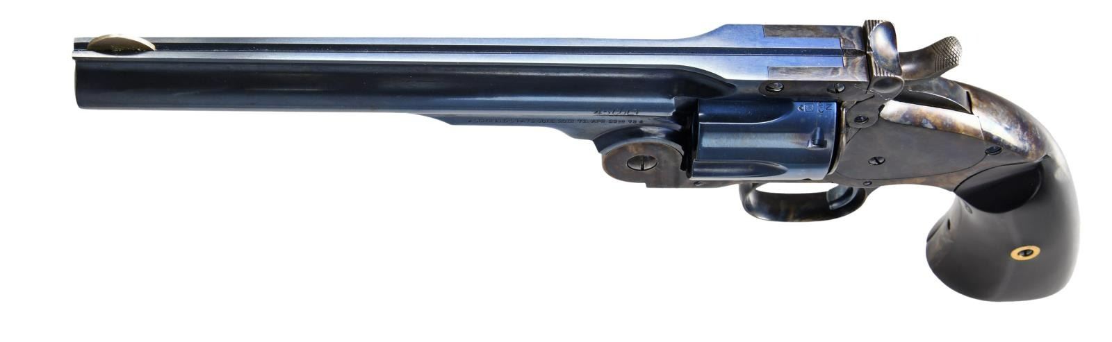 Cal. 45 Colt. S# F25428. Bbl. 7". Round blade front sight. V-notch rear sight. P-case colored frame, hammer, top strap, trigger guard, & grip frame. Blued bbl. assembly & cyl. Smooth walnut grips. Bottom of the grip frame has "US" marking. UNATTACHED ACCESSORIES: matching-numbered factory box that has a tear at one end w/ manual & cable lock. CONDITION: all aspects are near excellent. PROVENANCE: the collection of Gun Sport Ltd., owned by Jon R. Thomas. (23-4442/MJC). MODERN. $1,200-1,700.