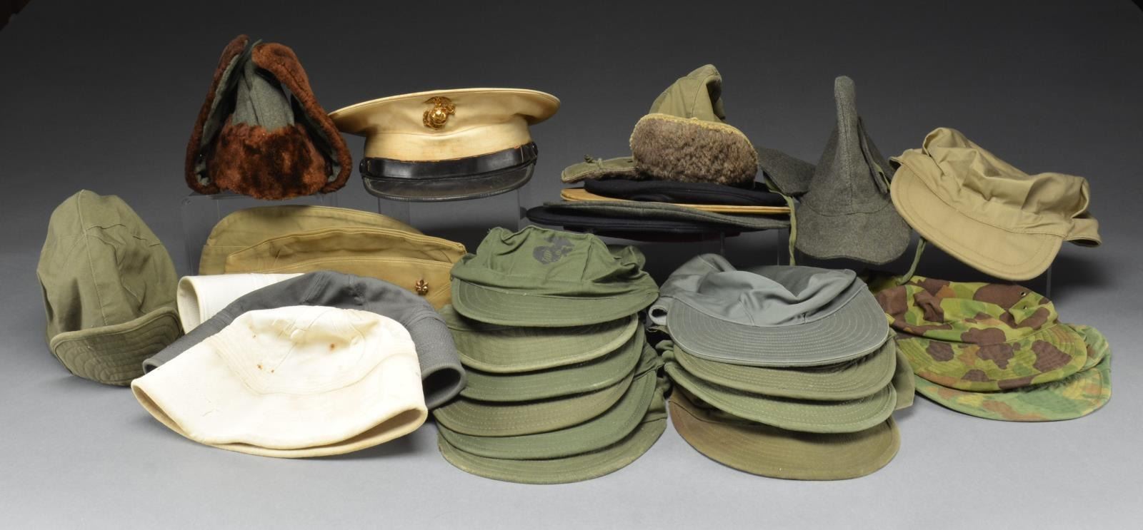 NAVY ISSUE HATS & CAPS INCLUDING RARE WWII WINTER FUR HAT.