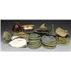 14) 2 WOODLAND PATTERN CAMOUFLAGE UTILITY CAPS. 1 Has soldier's name underneath visor. 1 OD green helmet cover for M1 helmet is unmarked. CONDITION: unless otherwise noted, condition runs from fair to good. Caps have normal wear, scattered stains & loose stitching. (02-15898/RW). $700-1,000.