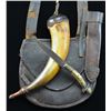 UNMARKED CONTEMPORARY POWDER HORN, KNIFE &