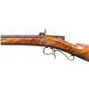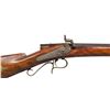 Cal. 41. NSN. Oct. 27.5" barrel. Dovetail front sight base with sheared off front sight blade. Barrel tang has 3.5" extended base for lollipop rear sight; hole is plugged with previous sheared off screw. Lefaucheux back action lock with light engraving. Single trigger. Walnut half stock includes Pewter nosecap, german silver ornamentation & hardwood ramrod held by 2 pipes. Brass furniture includes finger curl triggerguard, crescent buttplate & toeplate along with circular patch box lid & spear tip patch box. CONDITION: barrel has dark patina appearance with spots of corrosion & replacement nipple. Sanded & refinished wood shows handling marks. Dark bore with strong rifling. Appears mechanically fine when cycled by hand. PROVENANCE: The Esteemed Norm Greenberg Collection. (01-27739/MD). ANTIQUE. $300-500.